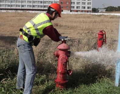 1、由于地下消防栓上蓋著厚重的井蓋板,打開時(shí)一般由兩個(gè)人用鐵制的專用工具勾起井蓋板,露出地下消防栓后再用加長(zhǎng)的開關(guān)扳手深入到